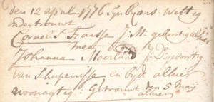 Gezinskaart:Cornelis Marinusse Faasse, * 1708, † 1789, zv Marinus Johannissen Face (Faasse) & Janneke Cornelisse (de) Kok.tr. 1e Helena Lena Steijn, dv. Rokus Arnoudse Lena Steijn & Maria Cornelisse Walraven. Kinderen van Cornelis en Helena:1. Margarita Faasse, * 1743, † 1819.2. Cornelis Faasse, * 1747, † 1828.