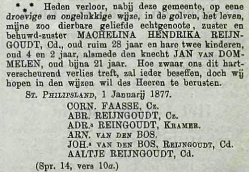 juli 1815 in St. Philipsland, dochter van Cornelia van Oeveren. Adriaantje is overleden op 10 februari 1903 in St. Philipsland, 87 jaar oud.