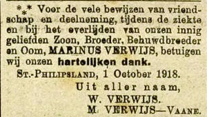 1.11.3. Cornelis Verwijs, geboren op 26 maart 1906 in St. Philipsland. Cornelis is overleden.