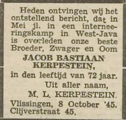 1945-10 december 1945). Jacob bleef ongehuwd.