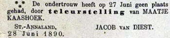 Gezinskaart:Jacob Kaashoek, * 1791, † 1848, zv. Anthony Kaashoek & Geertruij Boer.tr. 1e 1820: Maatje Tichelaar, * 1803, † 1839, dv. Johannis Tichelaar & Johanna van Nieuwenhuizen.Kinderen van Jacob & Maatje:1. Johanna Kaashoek, * 1820, † 1820. 2. Geertrui Kaashoek, * 1822, † 1881.3. Johannis Kaashoek, * 1825, † 1901.4. Johanna Kaashoek, * 1828, † 1901. 5. N.N. Kaashoek, * 1831.6. Willemina Kaashoek, * 1836, † 1837.7. N.N. Kaashoek, * 1837.